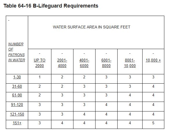 recreational water facility and the number of patrons as described in Table 64-16 B.